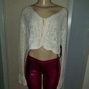 FRYE Open Knit Pointelle Ruffle Cardigan CREAM NWT Medium