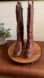 * the antiqued, burnished leather of this beautiful boot offers a rich, sophisticated look, while a one-inch leather stacked heel maintains that classic riding boot silhouette.