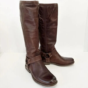 FRYE Philip Harness Tall Knee High Dark Brown Size 6.5 Equestrian Cowgirl