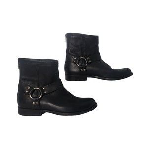 FRYE Phillip Harness Short Black Leather Ankle Boots Size 7