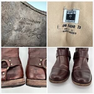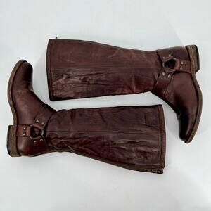 FRYE Phillip Harness Tall Riding Boots Womens 6.5 B Brown Leather 76850 Zip Back