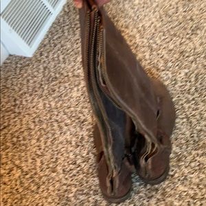 NEGOTIABLE PRICE. Beautiful dark brown FRYE riding boots. Like brand new, maybe wore twice! Original distressed look gives that worn in look to them which I loved! Size 9!