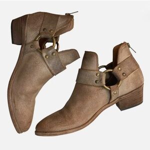 FRYE Ray Nubuck Leather Back Zip Harness Ankle Boots Distressed Brown