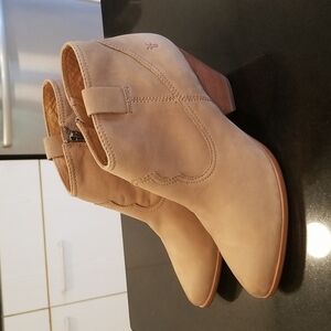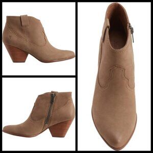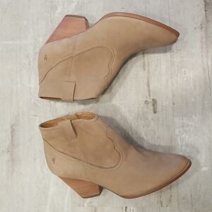 FRYE Rory Bootie Style # 3475038 Color: Ash (light brown) Size 10M New without Box; Never Worn Add western-inspired vibes to your look with Frye's Rory booties, crafted from leather with a pointed toe and subtle western stitching detail. Veritable icons of American culture, Frye boots and shoes have a 150-year history grounded in fine craftsmanship and the very best full-grain leathers Full-grain leather upper with top-stitched Western detail Pointed toe Leather lining Inside zip for easy on-off Cushioned footbed Stack cone heel Synthetic outsole Comfortable All Day Wear Cowboy Ankle Booties