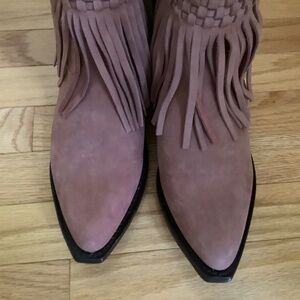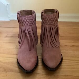 FRYE Sacha Leather Fringe Bootie Rose Cake SZ 9.5