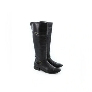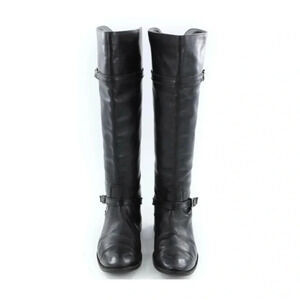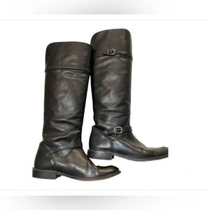 FRYE Shirley 77745 Black Leather Equestrian Riding Boots Tall Knee-High Pull On Buckles
