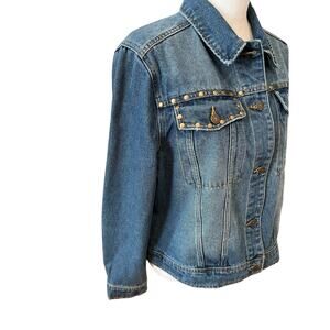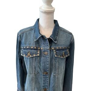 New FRYE Studded Western Denim Jean Jacket, size L. Cotton poly blend.