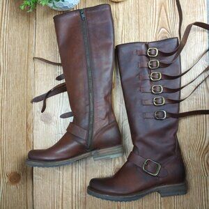 FRYE VERONICA Women Strap Tall Brown leather Boots size 6 Western Boho Moto