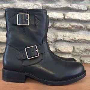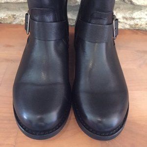 FRYE Vicky Engineer Size 6 Black Leather Buckle Moto Ankle Boots