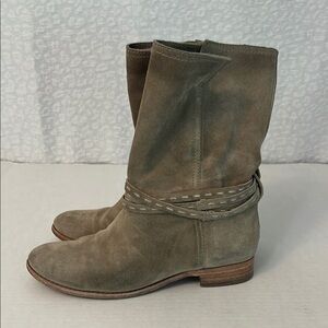 Good used condition - worn in just right. Women’s Frye Cara Pickstitch mid boots. Size. 8 gray/taupe