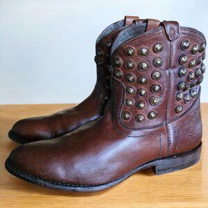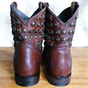 FRYE WYATT (8.5) DISC Studded Distressed Cognac Western Ankle Boot/Booties 76684