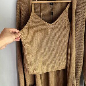 Two pieces duster cardigan with pockets and its matching knit tank.