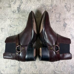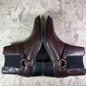 Frye smooth leather Chelsea boot features classic harness detail for Engineer styling and polished outsole to create a feminine look.