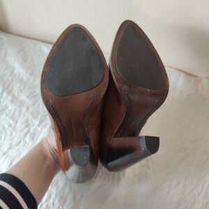 FRYE Women's Ilana Leather Shootie Heeled Bootie Size 6.5 M Brown Cognac