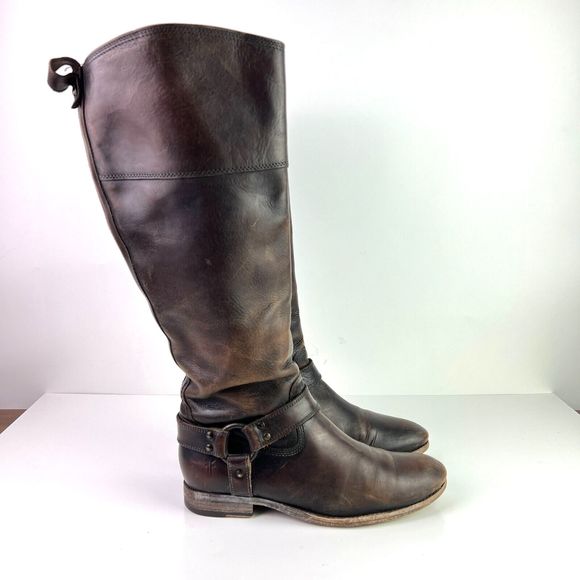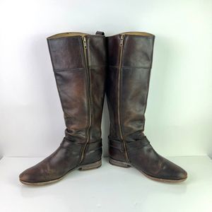 FRYE Women's Melissa Harness Extended Calf Leather Riding Zip Up Knee Boots 8B