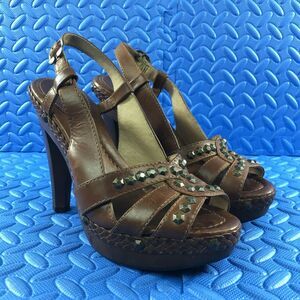 FRYE Women's Shoes Brown Leather Studded Platform High Heel Sandals Size 8
