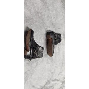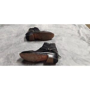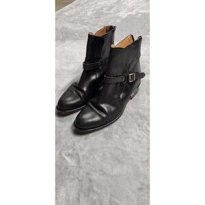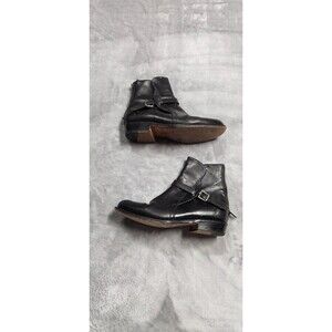 USed Frye boots. Has leather strap and buckle close and zipper on back of shoe. Shoe has wear from previous use. Ships fast!
