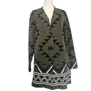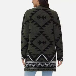 FRYE Womens Southwestern Jacquard Cardigan SZ Small Green Black Aztec Print Long