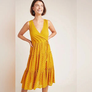 FRYE x ANTHROPOLOGIE Nuri Eyelet Wrap Dress in Dark Yellow
