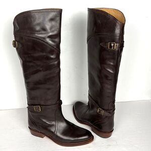 Beautifully appointed, this is polished, vegetable-tanned leather boot. Its equestrian inspiration is evident in this luxe riding boot. Leather lined- Leather outsole- Goodyear welt construction - Made in Spain- 16 1/2" shaft height-15" shaft circumference- 1" heel height. Size 6, worn couple times, excellent condition, please see all photos.