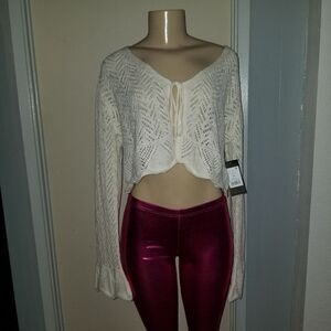 FRYE Open Knit Pointelle Ruffle Cardigan CREAM NWT