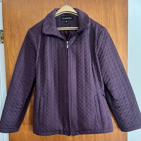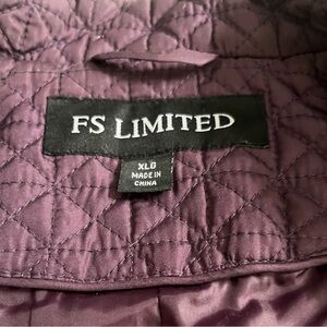 This item is a purple quilted jacket from the brand FS Limited in a size XL. Style: The garment features a quilted pattern and a purple satin-like lining. Good Preloved Condition. Pit to Pit: 21.5 Length: 25
