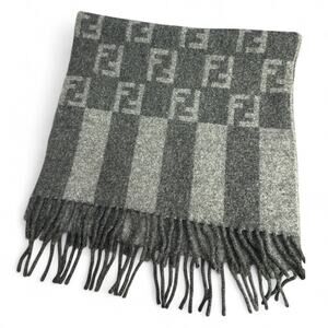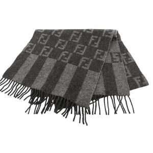 FS01. FENDI Gray Wool Scarf – FF Monogram Pattern