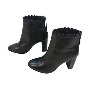 Elevate your look this season in these amazing Terrence booties by Coach. Scalloped trim punctuated with tiny studs tops this strong silhouette with a delicate edge.