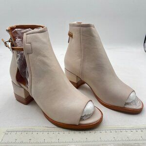 FSJ Apricot Peep Open Toe Cut Out Buckle Ankle Boot Block Low Heel Sandal