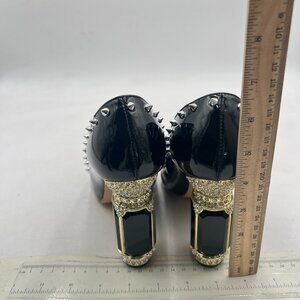 FSJ Black Bridal Pointed Toe High Heel Crystal Pumps Slip on Wedding Thick Comfort Evening Dress Studded Rivets Shoes