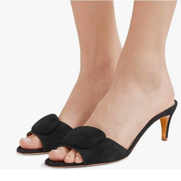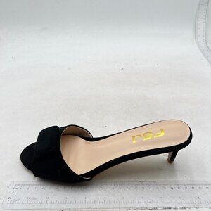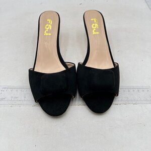 FSJ Black Casual Peep Toe Thin Mid Heels Backless Summer Sandals Slide On Mules