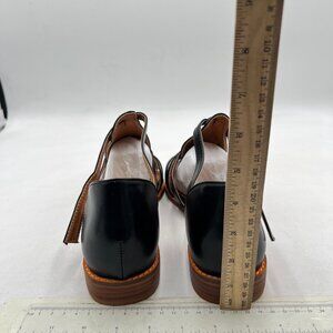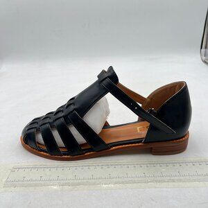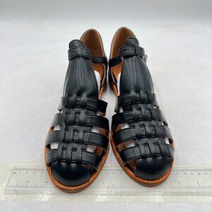 FSJ Black Closed Toe Low Block Heel Woven Roman Ankle Strap Hollow Caged Sandals
