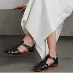 FSJ Black Retro Closed Toe Sandals Low Block Heel Woven Roman Ankle Strap Hollow Caged Summer Fisherman Sandals