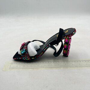 FSJ Black Colorful Rhinestones Diamond Heel Sandals Square Open Toe Ankle Strap Special Jewel Chunky High Heel Sandals Party Shopping Holiday Shoes