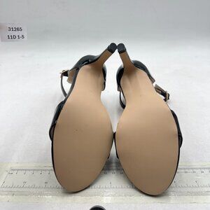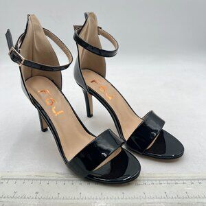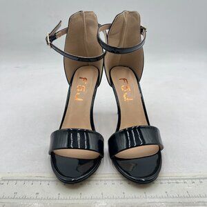 FSJ Black Comfy Open Toe Summer Sandals Ankle Strap High Heels Strappy Shoes