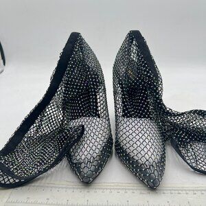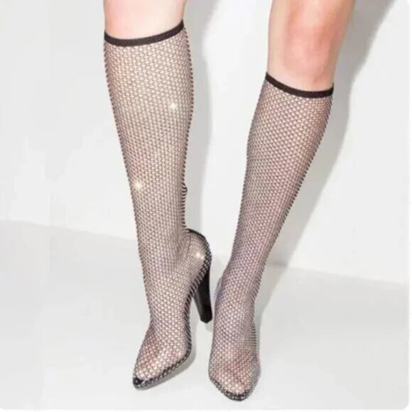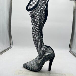 FSJ Black Diamante Fish Net Sexy High Heel Long Boots