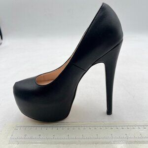 FSJ Black Extreme High Stiletto Heels Platform Slip On Pointed Toe Sexy Pumps