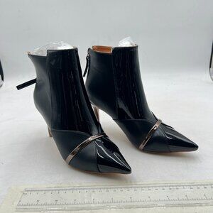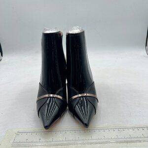 FSJ Black Glossy High Heel Ankle Boots Pointed Toe Bootie Chelsea Zipper Shoe