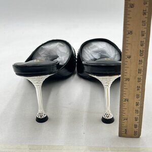FSJ Black Gorgeous Studded Pointed Toe Mules Stiletto High Heel Slip On Shoes