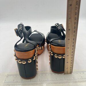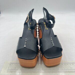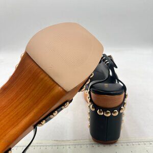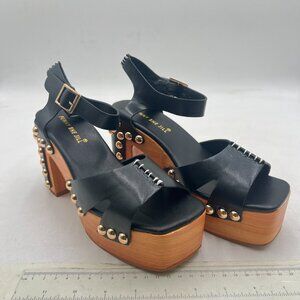 FSJ Black Open Toe Buckle Straps Studded Platform Wooden Chunky Heel Sandals