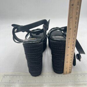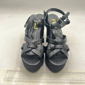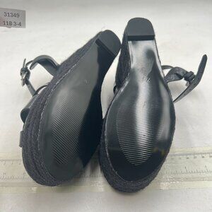 FSJ Black Open Toe Espadrille Platform Ankle Strap Wedge Sandals Woven Shoes