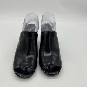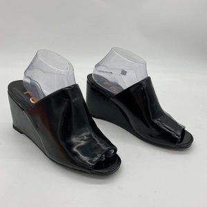 FSJ Black Peep Toe Heels Wedge Mules Summer Sandal