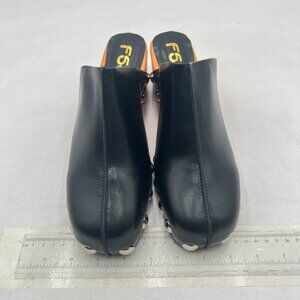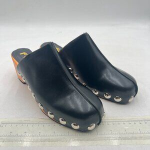 FSJ Black Platform Mules Closed Round Toe Studded Slip On Clogs Sandals