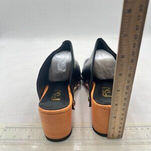 FSJ Black Platform Mules Closed Round Toe Studded Slip On Clogs Wooden Chunky Heel Slide Sandals Dressy Casual Shoes