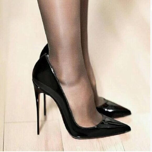 FSJ Black Pointed Toe Pumps High Heel Sexy Stilettos Slip On Office Cute Evening Dress Shoes