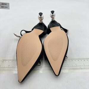FSJ Black Pointed Toe with Two Bows Mules Perals High Heel Sandal Slip On Shoes