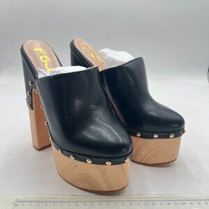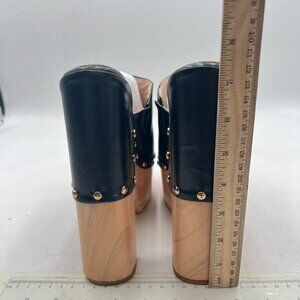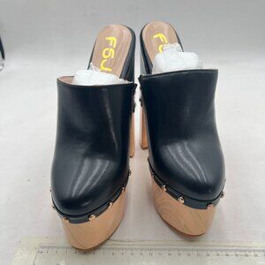 FSJ Black Round Toe Mules High Chunky Heeled Sandals Slip On Platform Wooden Clogs Studs Comfy Shoes