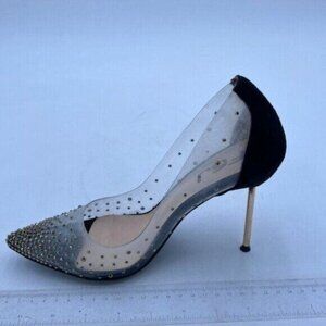 FSJ Black Studded Pointed Toe Transparent Pumps High Heels Shoes