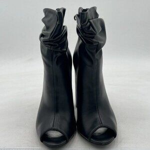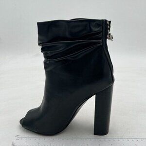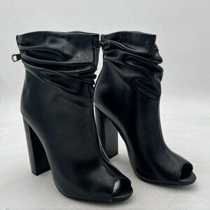 FSJ Black Women Stylish Peep Toe Slouch Ankle Boots Chunky Stacked Heels Party