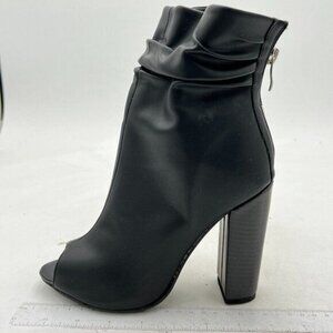 FSJ Black Women Stylish Peep Toe Slouch Ankle Boots Chunky Stacked Heels Party